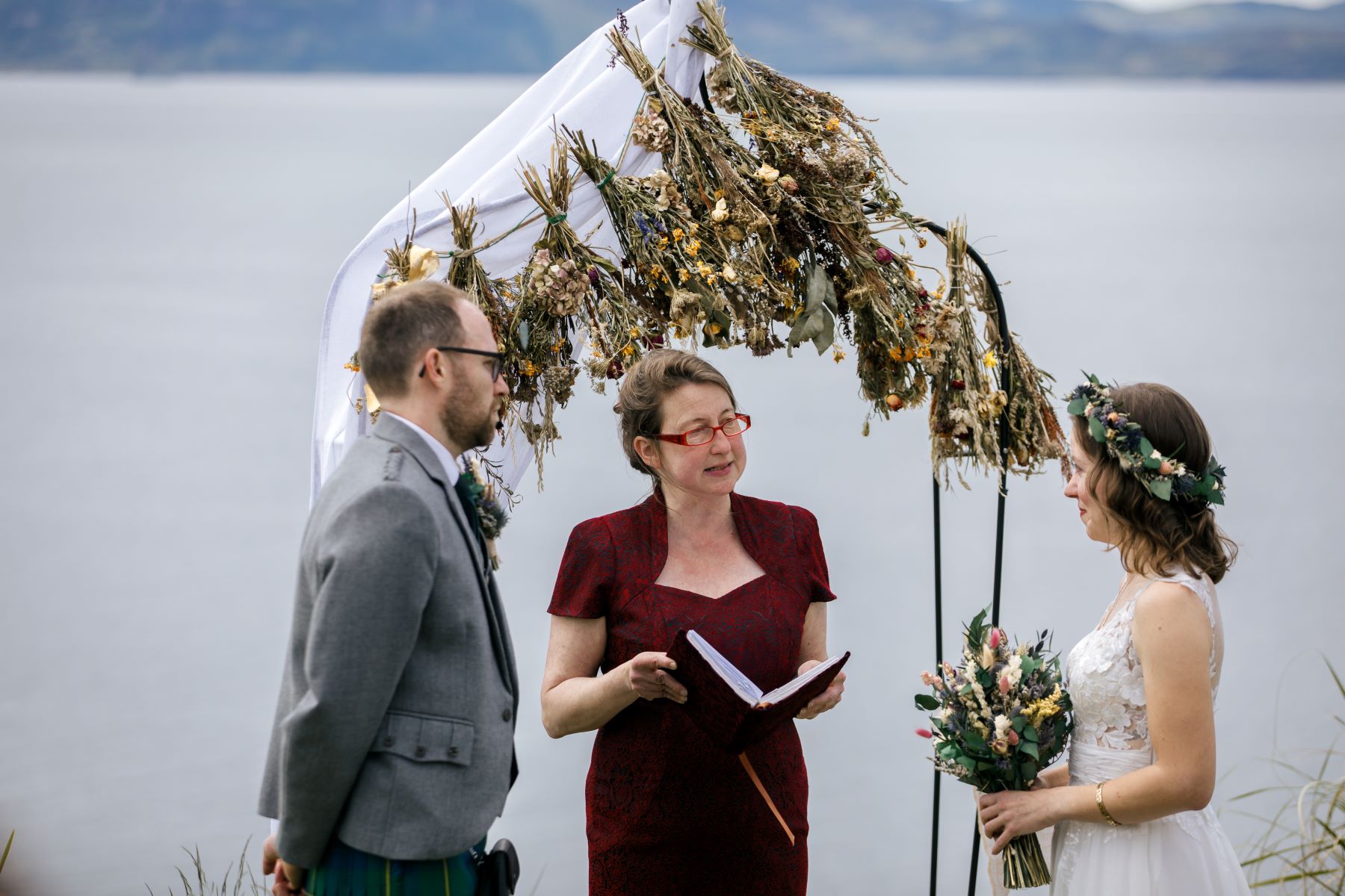 When Sean and I began planning our trip to the Scottish Highlands to celebrate our 25th wedding anniversary we didn’t have renewing our vows in mind. But, that’s what a romantic notion and a little late night internet searching will get you! We couldn’t be happier with the outcome and sweet memories. Finding Monika and All the Ceremonies of the North was truly a gift. I had looked at other officiant websites and they seemed quite lovely, but I knew Monika was the one after reading her philosophy. She is calm yet whimsical, philosophical but also witty. She took the time to get to know us. Monika’s service was thoughtful and joyful – it was just so us! It was like she had known Sean and me for years. Thank you, Monika, for making our day so special, memorable, and filled with love. https://alltheceremoniesofthenorth.co.uk/a-highland-vow-renewal/