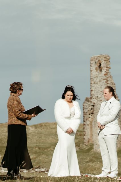 Working with Monika was a true delight. We come from different religious and cultural backgrounds and wanted to make sure we found a minister who could help us honour our respective traditions. Monika worked with us for over half a year to iron out the details, and she was more than happy to make adjustments on how best to weave together our traditions with the Scottish setting. We had to communicate virtually only, but Monika was always a text or email away. We had a handfasting ceremony, a quaich, a unity candle, and an exchange of rings, to name of few. Monika gave each the significance it deserved. Leading up to our big day, a few key elements were severely disrupted, causing us quite a bit of stress. Monika stepped up not only as the person presiding over our blessing, but also in the way only an interfaith minister could. Monika supported us with words and actions, constantly communicating with us even late into the night and even advocating on our behalf to rectify the issues and creating a much-needed space for us to figure things out. For this alone, we cannot recommend Monika enough. In the end, the disruptions were resolved and we were able to proceed. Weddings are so often a blur, but the ceremony will always be remembered as a tranquil and purposeful moment for us. Monika helped integrate everyone in attendance (and those who couldn\’t make it) and her words held deep meaning for us on an individual level. Monika exceeded every expectation and helped make our day the best it could be. We recommend her wholly and completely. https://alltheceremoniesofthenorth.co.uk/mara-and-nick-interfaith-church-wedding/